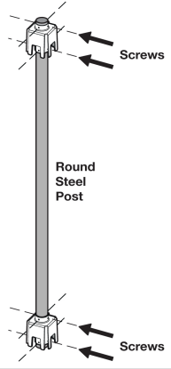 They slide over the round pipe and are fastened with screws. Just slide the vinyl post overThe Rook Post Mount Adapters and you have a professionally installed vinyl post.